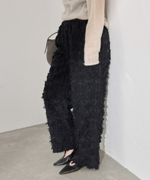 【2025AW】IENA華やかさとカジュアルさをほどよくミックスした、カットジャガードのパンツ。フリンジのように揺れる長めの毛足が立体感を生み、穿くだけで印象が決まる素材感が魅力です。ウエストはオールゴムでリラックスした穿き心地ながら、裾まで裏地付きで安心感のある仕上がりに。特別なシーンでのドレスアップはもちろん、スウェットやGジャンなどカジュアルアイテムとも好相性で、デイリーにも取り入れやすい一本です。※シリーズもございます。カットジャガードスカート(品番:25060900697040)※取り扱いについては、商品についている品質表示でご確認ください。※こちらの商品は、IENAでの取り扱いになります。直接店舗へお問い合わせの際はIENA店舗へお願い致します。※照明の関係により、実際よりも色味が違って見える場合があります。またパソコン・スマートフォンなどの環境により、若干製品と画像のカラーが異なる場合もございます。予めご了承ください。※商品の色味は、商品アップ画像をご参照ください。モデルサイズ:身長:163cm 着用サイズ:36本体:手洗い可能