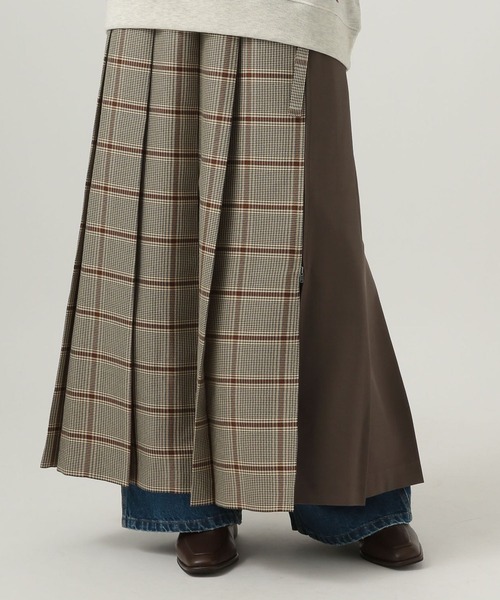 たっぷりとした分量感のあるシルエットのフレアラインスカート ーーー ★おすすめポイント★ [1]トラッドなチェック柄 [2]ジップ付きで2WAY仕様に [3]サイドの無地が印象的なデザイン ーーー [fabric] トレンドのトラッドなチェック柄にプリーツ加工を施し、ウールライクの無地の素材を組み合わせた素材感。 [design] 左脇のジップを開けることで、ラップスカート風の着こなしも楽しめる2WAY仕様に。 フロントはチェック柄、サイドにさりげなくのぞく同系色のシックな無地が印象的なデザイン。 落ち着いた色味と洗練されたシルエットが、シックで上品な印象を演出。 [styling] パンツやレイヤードアイテムを覗かせるスタイルや、ラップスカート風の着こなしも楽しるアイテム。 トラッドに着こなしても、スニーカーなどでカジュアルに外してもおすすめなスカート。 ------------------------------------- ≪お買い物をよりお楽しみいただくために≫ ◆商品のお気に入り登録(ハートマークをクリック) 完売カラーの再入荷通知や、完売間近の通知、セールの通知も受けることができます。 ◆ブランドのお気に入り登録 新商品や再入荷など、いち早くブランドのお得な情報を受け取ることができます。 -------------------------------------