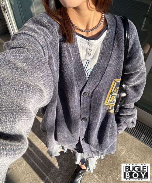 もちもち感がクセになるロゴニットカーディガン▼ポイント古着っぽい褪せ感のあるカラーに、鮮やかなロゴデザインが映えるニットカーディガン。もちもちとした柔らかな質感で、さっと羽織るだけでも着心地の良さを実感できます。コットン素材を使用しているため毛玉になりにくく、デイリー使いしやすいのも嬉しいポイント。アームや身幅にはほどよくゆとりを持たせ、リラックス感がありながらもルーズすぎないバランスに仕上げています。▼スタイリングメンズはワイドデニムやスウェットパンツにラフに羽織って、抜け感のあるカジュアルスタイルに。レディースはショートボトムやミニスカートと合わせて、ロゴを主役にしたコーデがおすすめです。---------------------------------------------------透け感:なし伸縮性:あり裏地:なし光沢:なし---------------------------------------------------家庭洗濯:40℃限度/手洗い可タンブル乾燥:不可アイロン:中温150℃まで可(当て布を使用して下さい)クリーニング:非常に弱い処理によるウェットクリーニング可●この製品は、素材の特性上、水分や汗により色落ちすることがあります。---------------------------------------------------【BUGLE BOY/ビューグル ボーイ】1977年ボトムス(カーゴパンツ)を中心にWilliam Mow氏により創業されたビューグルボーイ。全米有名デパートを中心に約3000の店舗展開、200の直営店を運営し、365億円を超える売上げ規模となり、ヤングカジュアルマーケットでは毎年TOP10にランクインするほどアメリカで最も大きいアパレルブランドの一つとなりました。80年代前半に発表して当時のダンサー達の圧倒的な支持を受けたパラシュートパンツ、90年代には後に複数のアメリカ有名ブランドが踏襲するカラーデニムを発表、著名な監督が制作した斬新なテレビCM、そして数々のパロディー版でも話題になり続ける 「Excuse me. Are those Bugle Boy Jeans you're wearing?」 のキャッチフレーズ等々、数多くの伝説をもつブランド、それが『BUGLE BOY』です。---------------------------------------------------※着用、お取り扱いの際は、商品についている品質表示とアテンションタグを必ずご確認下さい。※画像の商品はサンプルです。実際の商品と仕様、加工、サイズが若干異なる場合がございます。※可能な限り実物に近いカラーにて掲載していますが、撮影環境やモニター環境などにより製品と画像のカラーがやや異なって見える場合もございます。予めご了承ください。【お買いものをよりお楽しみいただく為に!!】▼商品のお気に入り登録(ハートマークをクリック)お気に入りアイテムの完売カラーの再入荷通知や、ラスト1点の通知、セールの通知も受け取ることができます。▼ブランドのお気に入り登録新商品や再入荷、クーポン配布などのお得な情報を受け取ることができます。