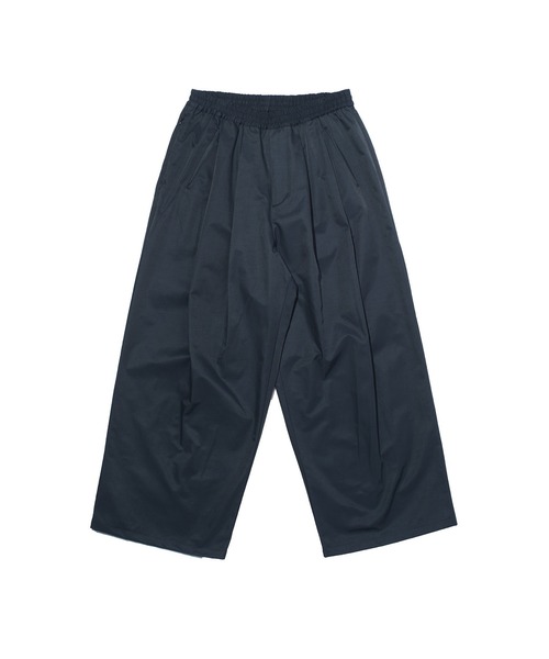 特殊塩縮加工により、肉感とハリを備えたテクニカルワイドパンツ。ナイロン×コットンのカルゼ織りにより生まれる、マットな光沢とドレープ感が美しい一本です。ウエストはゴムとドローコード仕様で、着心地とサイズ調整のしやすさを確保。腰に施されたタックが立体感を生み、ボリュームのあるシルエットを際立たせています。環境に配慮したフッ素フリーの撥水加工により、タウンユースから悪天候時まで幅広く対応する一本に仕上げています。・特殊塩縮加工で生地の密度とハリを強化・ナイロン×コットンのカルゼ組織・フッ素フリーの撥水加工・ウエストはゴム+ドローコードで快適な着用感・腰タックによるドレープと立体感