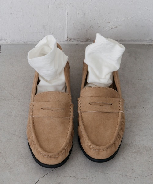 【EVOL 2026SS collection】クシュっとしたギャザーディテールがポイントのローファーが登場!デイリー使いしやすいベーシックデザインだからこそ、柔らかく足馴染みの良い素材を使用しソフトな履き心地に仕上げました。つま先から踵までふかふか弾力のある中敷き入りで、フラットソールでも足裏への負担が軽減され疲れにくいのも魅力の1つ!甲の深い部分まで足を覆ってくれるので、ホールド感抜群で歩きやすくたくさん歩く日にもおすすめ◎シーンやシーズン問わず履けるローファーは、ワードローブに1足は持っておきたいマストアイテムです!-----STAFF COMMENT-----【スタッフS】足長:右23.8cm・左23.8cm幅:標準・E甲:標準着用サイズ:23.5cmコメント:普段着用する23.5cmがぴったりです。足長が23.8cmあるので、つま先は比較的しっかりめに収まりますが、気になるような圧迫感はないので問題ないです。甲が高めなのでローファーのような甲が深いデザインは窮屈に感じることがありますが、こちらは素材が柔らかめなので足当たりが良いです。24.0cmは若干緩く感じたので、ぴったりめの23.5cmの方がフィット感があって歩きやすかったです。【スタッフI】足長:右23.5cm・左23.8cm幅:細め・B甲:低め着用サイズ:23.5cmコメント:23.5cmがぴったりでした。指先や横幅に窮屈感はなく全体的にホールド感があり、踵が抜けやすい私の足でも安心して履けました。【スタッフT】足長:右23.5cm・左23.5cm幅:やや細め・C甲:標準着用サイズ:24.0cmコメント:私は普段23.5cmもしくはMサイズを着用することが多いですが、ゆったりめの履き心地が好きなので24.0cmがちょうど良かったです。通年着用できるアイテムで靴下合わせやタイツでも履きたいのでワンサイズ上で着用したいです。【チャットで気軽に相談】InstagramのDMにて、気になる着用感や素材など、お気軽にご相談ください。動画・写真で詳しくお伝えすることも可能です!※履き心地には個人差がございますので、あくまでも目安としてご覧ください。※商品画像はサンプルを使用しているため、色味やサイズ等の仕様に変更がある場合がございますので、予めご了承ください。【EVOL/イーボル】instagram(evol_official0)レディース ローファー ソフトローファー コインローファー ギャザー 甲深 ホールド感 フィット感 歩きやすい フラット ローヒール 安定感 ふかふか クッション性 疲れにくい 痛くなりにくい 柔らかい ソフト 通勤 通学 仕事 セレモニー オケージョン 入学式 卒業式 入園式 卒園式 カジュアル モード 綺麗め レディ 大人カジュアル 大人可愛い 大人っぽい デイリーユース お出かけ デート 女子会 オフィスカジュアル ソックス合わせ 靴下合わせ 大きいサイズ 25cm