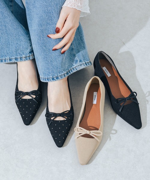 【EVOL 2026SS collection】 大ヒットしたニットパンプスがさらに履き心地良くアップデートして登場!つま先から踵まで肉厚でふかふか弾力のある中敷きを採用し、長時間の着用でも足裏をしっかりサポートしてくれるよう仕上げました。ニット素材は履き始めから楽ちんで、幅広・外反母趾でお悩みの方でもチャレンジしやすくておすすめ◎リボン部分が甲に心地良くフィットしてくれてホールド感抜群です。踵内側にクッション付きで、歩行時に踵がパカパカ浮いたり脱げたりするのを軽減してくれるのも嬉しいポイント。華奢なリボンデザインは可愛らしくなり過ぎず、ON・OFF問わずに履ける優秀アイテムです! -----STAFF COMMENT----- 【スタッフS】 足長:右23.8cm・左23.8cm 幅:標準・E 甲:標準 着用サイズ:23.5cm コメント:足長23.8cmの私でも普段着用する23.5cmで少しゆとりのある履き心地でした。素足だと大丈夫ですが、ストッキングでの着用だと若干かかとが浮きそうな感覚があります。24.0cmはかかとが抜けてしまいました。ニット素材は履き馴染みも出やすいので、サイズは隙間なくぴったりめの方がフィットして歩きやすいです。足幅が狭い方やストッキングで着用される方はワンサイズ下げても履けると思います。 【スタッフI】 足長:右23.5cm・左23.8cm 幅:細め・B 甲:低め 着用サイズ:23.5cm コメント:ヒールが少しあるので前滑りしやすいので、1mmの中敷きを入れて23.5cmでぴったりでした。踵にパッドがあるので踵が抜ける心配なく履けます。 【スタッフT】 足長:右23.5cm・左23.5cm 幅:やや細め・C 甲:標準 着用サイズ:23.5cm コメント:私は普段23.5cmもしくはMサイズを着用することが多く、ゆったりめの履き心地が好きですが23.5cmがちょうど良かったです。ヒールが3.5cmとちょうどいいのでお仕事にもおでかけ用でもおすすめです。 【チャットで気軽に相談】 InstagramのDMにて、気になる着用感や素材など、お気軽にご相談ください。動画・写真で詳しくお伝えすることも可能です! ※履き心地には個人差がございますので、あくまでも目安としてご覧ください。 ※商品画像はサンプルを使用しているため、色味やサイズ等の仕様に変更がある場合がございますので、予めご了承ください。 【EVOL/イーボル】instagram(evol_official0) レディース パンプス ニット 柔らかい ソフト 伸縮性 通気性 リボン ポインテッドトゥ 華奢見え ローヒール 3.5cm 踵パッド付き クッション付き 安定感 ホールド感 フィット感 歩きやすい ふかふか クッション性 疲れにくい 痛くなりにくい 綺麗め レディ フェミニン ガーリー カジュアル 大人カジュアル 大人可愛い デイリーユース お出かけ デート 女子会 通勤 通学 仕事 オフィスカジュアル 結婚式 二次会 入学式 卒業式 入園式 卒園式 ソックス合わせ 靴下合わせ 小さいサイズ 大きいサイズ 22cm 25cm