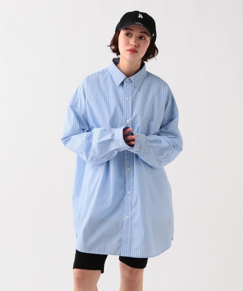 高密度ブロードストライプ生地を使用したオーバーサイズシャツ。Mサイズはレギュラーシルエット、LサイズはBIGシルエットで着こなしのスタイリングによりお好みのサイズを選んでいただけるアイテムです。※サンプルにて撮影をしておりますので、実際の商品とは仕様や加工・サイズ等が若干異なる場合がございます。※屋外の光や照明の当たり具合で、実物と色味が異なって見える場合がございます。詳細画像の色味をご確認ください。 なお、商品の色や質感を出来るだけ忠実に再現するよう心掛けておりますが、パソコンなどの環境により、実物と若干異なる場合がございます。※写真を許可無くコピー・転用することは固くお断りします。