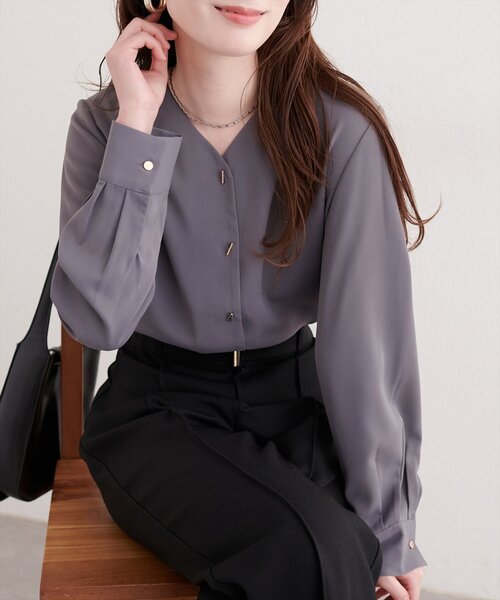 【2026SS natural couture】 プチプラバー釦とろみブラウス■Designフロントにあしらったバーボタンがポイントのお上品ブラウス。首元のVネックが美しくすっきりとした印象を与えます。袖口の幅広めカフスが、シンプルな中にもちょっとしたアクセントに。■Styling 1枚でキレイめに着用するのはもちろん、ジャンスカやカーディガンのインナーとしてもオススメです。腰回りの隠れる着丈がINスタイルもOUTスタイルも美しくキマります。プライベートからオフィスまで幅広いシーンに溶け込む1枚です。■Fabric とろみと落ち感があり上品な印象に。ロングシーズン活躍する素材感です。===============お手入れ方法:手洗い透け感:淡色系ややあり裏地:なし伸縮性:なし光沢感:少しあり生地感 :落ち感のある生地感===============※着用、お取り扱いの際は、商品に付いている品質表示とアテンションタグを必ずご確認ください。【お気に入り登録でお得な情報がいっぱい】・「商品のお気に入り登録」で再入荷通知や、ラスト1点の通知、セール通知をいち早く受け取ることができます。・「ブランドのお気に入り登録」で新商品や再入荷など、お得な情報を受け取ることができます!※店舗の入荷時期は商品によって異なります。店頭の在庫状況につきましては各店舗にてお問い合わせください。※撮影時の光の関係で、画面上の画像と実際のお色とでは若干の色差が生じる可能性がございます。また、ご覧いただいているモニター画面や、お使いのブラウザによっても、お色の違いがございますことをあらかじめご了承くださいませ。202512262026SS_natu26SS