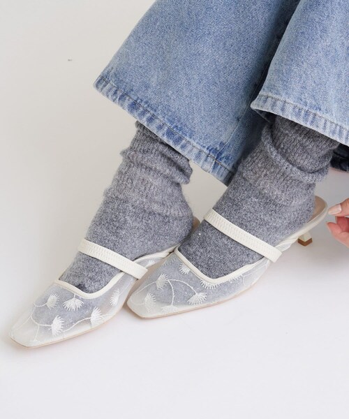 足元を華やかに彩る、フラワーチュールミュールが登場!●デザイン・全体に散りばめられたフラワー柄の刺繍が目を惹くミュール。・ 透け感のあるチュール素材が軽やかな足元を演出。足元をすっきりと美しく見せてくれます◎・バックストラップで安定感があり、歩きやすいのも嬉しいポイント。●スタイリング・カジュアルなデニムに合わせるだけで、女性らしさをプラスしてくれるので、綺麗めカジュアルスタイルが叶います。・ワンピースやスカートと合わせて、上品なフェミニンスタイルにも。お出かけやオケージョンスタイルにも◎・ソックスやタイツとのレイヤードで、季節感のあるスタイリングも楽しんでいただけます。------------------------------------------------------商品のお気に入り登録➡ お気に入りアイテムの値下げ・再入荷・在庫1点などの通知を受け取ることができます。ブランドのお気に入り登録➡ 新商品や再入荷、セール、クーポン配布などお得な情報を受け取ることができます。※サイト上のカラー名と、お届け商品に記載されているカラー名が異なる場合がございます。※商品の色味は、撮影場所や光のあたり具合などにより色味が違って見える場合が御座います 。 また、お客様のお使いのPCのモニター環境などにより色味が違って見える場合が御座います。予めご了承の上ご注文下さい。※ご注文いただいた予約商品のお届け時期の確認は、注文履歴ページより行えます。------------------------------------------------------
