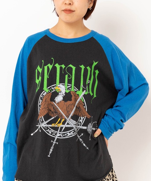 架空のバンドのビジュアルをイメージしたグラフィックT■POINT■架空のバンドのビジュアルをイメージしたグラフィックにしました。グラフィックのイメージは、まずバンド名にした”Seraph”は熾天使という意味で、天使の階級の中で最も位が高いとされている天使です。なんか格好いい名前、強そうなイメージの剣、自由や勇敢さの象徴のイーグル、衝動的に組んだバンドをなんかかっこいい!と思うモチーフを組み合わせて、バンドのイメージとして形にしたグラフィックのイメージです。■生地■綿/ポリエステルのスラブ天竺を使用したラグランロンT。■COLOR■ヴィンテージホワイト×スミクロ・ヴィンテージホワイト×ピンク・スミクロ×ブルー▼シリーズアイテムM2638 FLAME GHOSTラグランロンT生地感:やや薄い・やや柔らかい透け感:やや透ける (602、603のみ)伸縮性:あり----------------------------------------------------------------------◆◆お気に入り登録しておすすめ情報をゲットしよう◆◆【商品のお気に入り登録】再入荷、残り1点、セール、タイムセール、クーポンなど、いち早く受け取ることができます。【ショップ・ブランドのお気に入り登録】新商品、予約商品、再入荷、ショップのおすすめトピックスなど、ショップ・ブランドの最新情報を受け取ることができます。----------------------------------------------------------------------※商品についている品質表示タグやアテンションタグを必ずご確認の上、着用、またはお取り扱い下さい。※画像の商品はサンプルです。実際の商品と仕様、加工、サイズが若干異なる場合がございます。※撮影場所により、光の当たり具合で色味が異なって見える場合がございます。商品写真はできる限り実物の色に近づけるようにしておりますが、実際の商品と色味が異なる場合がございます。カラーは商品の掛け画像をご参照下さい。
