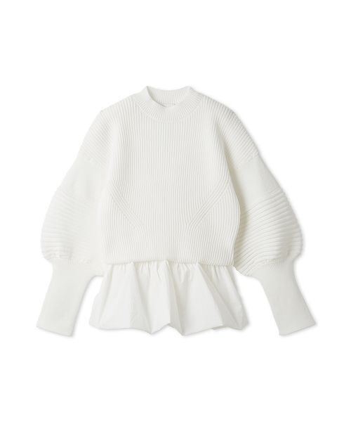 伸縮性:あり 生地の厚さ:やや薄手 ■Design ペットボトルリサイクルの糸を使った環境に配慮したニットトップスです。 マットに見える糸の構築的なニットと異素材のペプラムシルエットが魅力的なプルオーバー。 トップス部分はコンパクトに見える編み柄を施し、絶妙な丈バランスでペプラムフレアをアクセントに入れています。 しっかり目面を詰めていますが重くならず、軽い仕上がりとなっています。 ■Coordinate 1枚で華やかなスタイルアップ効果のある1着。 シンプルにデニムやワイドパンツ、タイトスカートなどに合わせるのがおすすめ。 ※照明の関係により、実際よりも色味が違って見える場合があります。 またパソコン・スマートフォンなどの環境により、若干製品と画像のカラーが異なる場合もございます。予めご了承ください。 商品の色味は、商品単品画像をご参照下さい。 ※商品画像はサンプルのため、色味やサイズ等の仕様に変更がある場合がございますので、予めご了承ください。