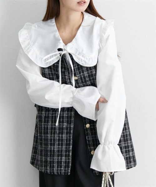 ウエストを強調したペプラムデザインがメリハリ感を生み出しスタイルアップ効果も◎大人トレンドを意識したこだわりのアイテムであなたの毎日に輝きを。ただシンプルできれいなだけじゃ物足りない。肩の力を抜いて“ちょっと”まわりに差をつける、そんな自分でありたい。カジュアルすぎず、スタイリッシュで大人の品性を感じる着こなしに。そんな、こなれたオシャレを楽しむ女性に寄り添う新鮮なリアルクローズをご提案します。■デザインウエストをきゅっと絞ったペプラムデザインが女性らしいメリハリのあるシルエットを演出します。気になるお腹周りやヒップをさりげなくカバーしつつスタイルアップ効果も期待できるのが嬉しいポイント。ツイード調の素材感が上品さをプラスしカジュアルな装いにもきれいめな印象を与えます。ゴールドのボタンがアクセントになり、高見え効果も抜群。シンプルなトップスに合わせるだけでいつものコーディネートがワンランクアップする主役級アイテムです。トレンド感がありながらも、長く愛用できるデザインにこだわりました。■素材ロングシーズンきれいめに着こなせるやわらかツイード調織物素材を使用しています。複数の素材を組み合わせることで立体感のある表情豊かな風合いとなやかで上品な肌触りを実現しました。裏地にはポリエステル100%を使用し滑らかな着心地と、着脱のしやすさにも配慮しました。ご自宅で手洗い可能なので、お手入れも簡単忙しい大人の女性に嬉しい、実用性も兼ね備えた一枚です。■おすすめのスタイリングシンプルなニットやブラウスに重ねるだけで上品なレイヤードスタイルが完成します。ボトムスにはデニムパンツを合わせてカジュアルダウンさせるとこなれ感のある大人のきれいめカジュアルに。足元はヒールのあるパンプスやブーツを合わせるとさらにスタイルアップ効果が期待できます。オフィスシーンでは、テーパードパンツやフレアスカートと合わせてきちんと感のある着こなしに。インナーをタートルネックにすればより洗練された印象になります。アクセサリーは華奢なものを選び上品さをキープするのがおすすめです。ベスト一枚で様々なシーンに対応できる着回し力の高さも魅<仕様>[表地]ポリエステル80%・アクリル7%・レーヨン6%・綿4%・ナイロン3%(織物) [裏地]ポリエステル100%<洗濯方法>手洗い■キーワードお出かけ、お洒落、かわいい、きれカジ、アラサー、アラフォー、オフィスカジュアル、カワイイ、コンシャス30代、シンプル、トップス、トレンド、ファッション、ベスト、レディース、大人女子、日常使い、日常着、春、普段着、毎日、秋、重ね着、着やせ、上品、きれいめ