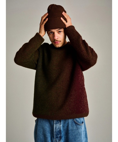 【色使いが個性的なモヘアニット】●複数の色が混ざり合ったグラデーションが特徴●ダークグリーン、ブラウン、深みのあるボルドー(バーガンディ)が組み合わさっており、秋冬らしい落ち着いた、かつ存在感のある配色。●42%アクリル、30%ポリアミド、14%モヘア、14%ウール、●レギュラーフィットのラグランスリーブ●前後、袖にカスタマイズされたグラデーションアートワーク●リブ付きカフス、首元、裾、左側に白い文字のロゴ刺繍●首の後ろに白いポップロゴが刺繍【Pop Trading Company】アムステルダム発のスケートカルチャーを背景に、ミニマルで洗練されたデザインを融合させたブランド。無駄を削ぎ落としたロゴや配色に、スケーター視点の機能性と耐久性を備え、大人でも自然に着られる上品さが魅力。ストリートとヨーロッパ的品格のバランスが高く評価されている。BurbberyやDickiesなどアパレルブランドのコラボレーションやキャラクターのMiffyや雑誌のPopeyeなど、幅広いコラボレーションもおこなっている・・・・・・・・・・・・・・・・・・・・・・~お気に入り登録のオススメ~☆商品のお気に入り登録再入荷、残り1点、セールなどの情報通知を受け取ることができます。☆ブランドのお気に入り登録新商品や再入荷、ショップのおすすめトピックスなど、最新情報を受け取ることができます。・・・・・・・・・・・・・・・・・・・・・・※掲載画像に関しましては、屋外や屋内での光の当たり方やパソコンやスマートフォンなどの閲覧環境によって実際の色味と異なる場合がございます。予めご了承ください。※サイト内でのカラー名と、お届け商品に記載されているカラー名が異なる場合がございます。※着用・お取り扱いの際は、商品についている品質表示とアテンションタグを必ずご確認ください。。