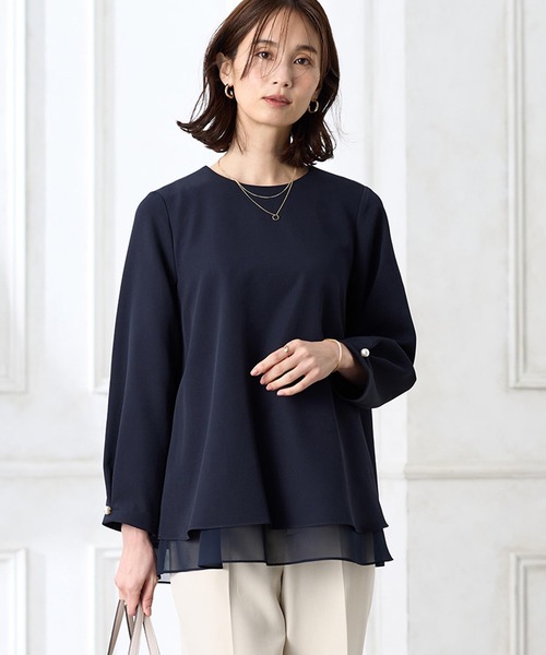 《一枚で品よく決まる軽やかセットアップブラウス》 上品な落ち感のある素材を使用したセットアップ対応ブラウス。 裾を重ねたようなレイヤード風デザインが優美さを演出。 袖口にはさりげないディテールをあしらい、シンプルながらも大人らしい表情に。 ジャケットのインナーとしても使いやすく、オンオフ問わず活躍します。 【デザインポイント】 ・伸縮性に優れた素材でストレスフリーに仕上げました。 ・セレモニーや食事会、通勤、オフィスシーンなど様々な場にマッチ。 ・同素材で仕立てたセンタープレスストレッチパンツ(検索番号:354132-12)でセットアップ可能。 ----------商品情報---------- [着用目安]秋、冬、春 [裏地]なし [透け感]なし [伸縮性]あり ---------------------------- 【サイズバリエーション】 ・9号(Mサイズ相当) ・11号(Lサイズ相当) ・13号(LLサイズ相当) 【着用シーン】 入学式、入園式、卒業式、卒園式、授業参観、セレモニー、新生活、就活、リクルート、オケージョン、フォーマル、結婚式、二次会(2次会)、披露宴、お呼ばれ、パーティー、食事会、同窓会、発表会、通勤、仕事、出張、プレゼン、在宅、デイリー、ショッピング、女子会、旅行、行楽、お出かけ、ディナー、ランチ会、記念日、デート、学校行事、オフィスカジュアル 【ブランド紹介】 《A/C DESIGN BY ALPHA CUBIC(エーシーデザインバイアルファキュービック)》は通勤時やオフィスで、学校行事や“おうちの用事”などのオケージョンで、女性が気張らずに心地良くいるための服を提案するブランドです。 【お買い物をお得にもっと楽しんで頂くために】 ▼商品のお気に入り登録▼ 完売カラーの再入荷通知や、ラスト1点の通知、プライスダウンしたセール通知も受け取ることができます。 ▼ブランドのお気に入り登録▼ 新作や再入荷等、いち早くブランドのお得な情報を受け取ることができます!