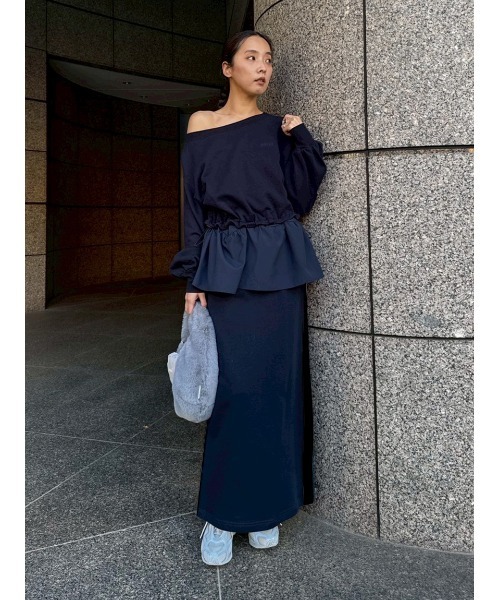 【NEW YEAR'S SPECIAL ITEMS】日頃の感謝を込めた、特別なアイテム1.1(thu)0:00~発売!■マシンウォッシャブル伸縮性:ややあり生地の厚さ:やや厚手■Design中肉かつしっとりとした質感の裏毛を使用したセットアップアイテム。トップスの裾には布帛のパーツがドッキングされており、着用すると1枚でスウェットとシャツをレイヤードしたようなデザインに。スカートはIラインながら体型を拾わない絶妙なサイズ感。セットではもちろん、単体でも着回しやすい2点がセットになったお得感あふれる商品です。※トップス:切り替えデザインの仕様変更あり。ドロスト仕様無しに変更となります。※スカート:NVYのサイドラインはブラックとなります。※照明の関係により、実際よりも色味が違って見える場合があります。またパソコン・スマートフォンなどの環境により、若干製品と画像のカラーが異なる場合もございます。予めご了承ください。商品の色味は、商品単品画像をご参照下さい。 ※商品画像はサンプルのため、色味やサイズ等の仕様に変更がある場合がございますので、予めご了承ください。
