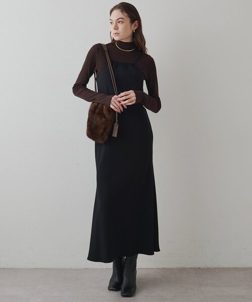 女性らしさを引き立ててくれる、大人のキャミワンピ ■女性らしいマーメイドシルエットが印象的なキャミソールワンピース。 ■程よく身体にフィットし、自然とスタイルアップの叶うデザイン。 ■ホルターネック風にアレンジしたタイトなフロントデザインがポイント。 ■バイアスの地の目でノンストレスながらきれいなシルエットを演出。 ■ドレスとしてもデイリーなワンピースとしてもシーズンレスに活躍出来るアイテム。 【MATERIAL】 落ちすぎない程よいドレープ感と、ポリエステルの適度なテンションによるややストレッチ性のあるジョーゼット素材。 【STAFF COMMENT】 ■身長154cm|普段サイズ S~M|着用サイズ 38 アジャスターで丈を調整できるので幅広い身長の方に着ていただけます。首元に高さがあるので安心感があります。 ■身長158cm|普段サイズ S~M|着用サイズ 38 胸元のデザインがポイントのキャミワンピ。スカート部分はフィット感がなく、着やすいシルエットです。インナーも、すっきりしたものなら重ねて着れました◎ ---------------------------------------------------- 洗濯方法:手洗い可 透け感:ややあり(ライトベージュ) 裏地:なし 伸縮性:なし 光沢感:あり ---------------------------------------------------- 【注意事項】 ・画像の商品はサンプルです。実際の商品と仕様、加工が若干異なる場合があります。 また 、パソコンやスマートフォンのモニター環境などにより、色味が違って見える場合があります。 ・店頭及び屋外での撮影画像は、光の当たり具合で色味が違って見える場合があります。 商品の色味は、スタジオ撮影の画像をご参照ください。 ・入荷状況により、お届け予定が前後する場合があります。 ・お客様への発送が店頭販売より遅れる場合があります。 ・追加生産商品は、一部の店舗、通販で販売中の場合があります。 予めご了承下さい。 【気になるアイテムは、「お気に入り」登録を】 ハートマークをクリックしておくことで、スムーズにお買い物が楽しめます。 ・ラスト一点のお知らせ ・再入荷のお知らせ ・SALEのご案内