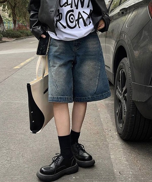 ゆるっとしたワイドシルエットとラフな丈感が今っぽいハーフ丈のデニムバギーパンツ。 ほどよくユーズド感のある色落ち加工が、こなれた印象をプラス。 Tシャツやジャケットを合わせてストリート×カジュアルな旬なコーデが完成します。 スニーカーやブーツとも好相性。 しっかりとした生地感で季節問わず活躍すること間違いなしです。 ‥‥‥‥‥‥‥‥‥‥‥‥‥‥‥‥‥ 透け感:無 伸縮性:無 厚さ:普通 着丈:膝丈 ポケット:前2つ、後ろ2つ ‥‥‥‥‥‥‥‥‥‥‥‥‥‥‥‥‥ ●サンプル品を使用している事もあり、サイズ感など多少異なる場合もございます。 ●パソコンのモニター、撮影の光量などにより画像と実物の色味が異なって見える場合がございます。 ●入荷時期・追加生産により画像・詳細と多少異なる場合がございます。 ■商品によって生地の他繊維の混紡、縫製の多少のほつれなどがある場合がございます。 汗や雨に濡れたまま長時間放置すると、他の物に色移りする恐れがありますのでご注意ください。 着用中の摩擦により、色移りすることがありますのでご注意ください。 淡い色の衣類との重ね着には十分ご注意ください。 この製品は染色の性質上、色落ち・色移りする場合がありますので、単品で洗濯してください。 洗濯の際は、色移りの恐れがあるため単独洗いをおすすめします。 湿った状態での他の衣類との接触は避けてください。
