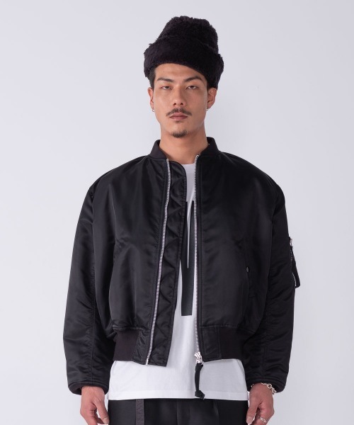 環境にやさしいリサイクルナイロンに、フッ素フリーの撥水加工『C-ZERO撥水』を施したとことんサスティナブルな素材を表側に採用。裏側にはスカジャンなどに使用される中肉の光沢のあるサテン生地を採用。本体に中わたを入れることで防寒性を確保。身幅を広くし、あえて極端に着丈を短めにすることで独特のフォルムを表現。 ※商品と袋がくっつかないように製品袋内に粉末が微量に入っておりますが、商品の品質を正常に保つために使用しております。 特に黒い製品にはその粉末が折り目等に目立って汚れのように見えてしまうことがございますが、製品上問題はございませんのであらかじめご了承をお願い致します。 気になるようでしたら、濡れ布巾等で拭き取っていただければ簡単に落ちるものとなっております。