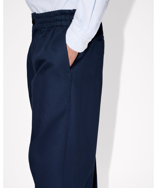 ストレッチ パンツヘリンボーン コットン内側にドローストリングを備えた伸縮性のあるベルトとボタン開閉式足首にはドローストリングサイドポケット×2バックポケット×2チケット用バックポケット×1シグネチャーの刺繍モデル:身長185cm、着用サイズ:Mストレート フィット総丈:112 cm