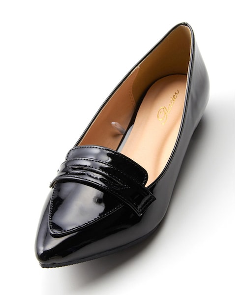 女性らしさもきちんと感も◎すっきりとしたアーモンドトゥ&エナメル素材でフェミニンにもクールにも履ける上品デザイン。安定感のあるローヒール&ソフトクッション入りの中敷きで履き心地も◎