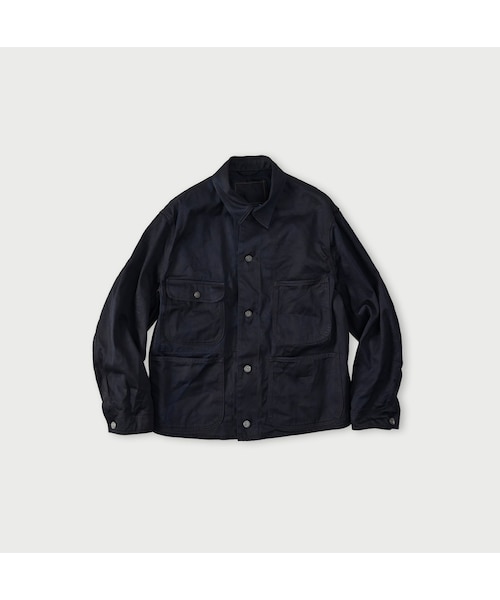 着て洗って育てるチノ本当に使い込まれたワークウェアを見れば新しい服にない圧倒的な美しさを感じるはず。混色した藍とインディゴが味わい深いチノは、凸凹がくっきり、地の目が立っています。2本の糸を撚り合わせて丈夫に織ったはたらきものの高機能素材です。大きなポケットが便利な四角いシルエットが無骨なカバーオール。着て洗ってを繰り返し育てる楽しみのあるアウターです。