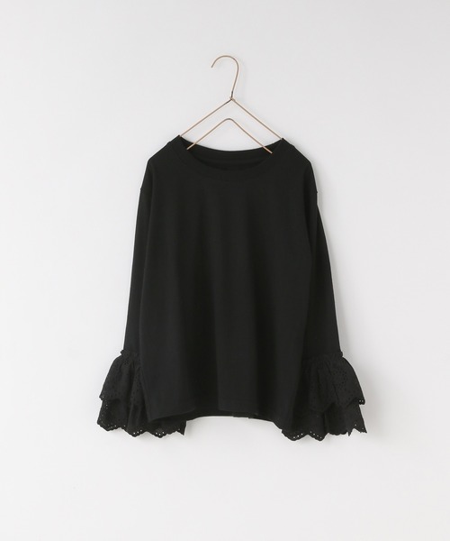 ■デザイン■ 毎年人気な袖レースプルオーバー。 スウェットやニットにレイヤードすると、袖からちらりとレースがでるのがとってもカワイイ。 今回はレースも綿レースにアップデートし、ボディーカラーに合わせてレースも染めて同色にしています。 1枚で着ても気映えするアイテムなので、柄ボトムやデニムと合わせて着ていただきたいです!