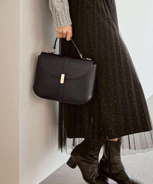 トレンドに流されない洗練デザイン。ハンドバッグとショルダーで楽しむ上品2WAY。【素材感】・マットなツヤが上品な、しっとりとした仕上がりの合皮を使用。【デザイン・シルエット】・フロントベルトでカッチリとしたデザインでありながら、フラップと底面が丸みを帯びたカーブシルエットを出して、柔らかい雰囲気に仕上げている。・持つだけで上品な雰囲気にアップデートできるバッグとしておすすめ。・500mlペットボトル、日傘など一緒に入れることが可能なサイズ感。【カラー】・ベーシックでオケージョンにも使えるようなブラック・ブラウン系・ベージュ系の3色展開。・春らしいベージュ系(ライトベージュ)や今年らしいブラウン系がおすすめ。【スタイリングポイント】・オケージョン向けバッグなので、セットアップやジャケットにはもちろん、カジュアルスタイルにも足元をローファーやパンプスで合わせてこのバッグを合わせると休日のシティカジュアルとしても上品な雰囲気になるのでおすすめ。・ワークスタイルにももちろん合うのでデイリーの通勤スタイルに取り入れても◎。-----------------------------ポケットの数:外0、中1A4収納:不可長財布収納:可能ショルダー紐:あり(調整、取り外し可能)----------------------------※撮影時の光、お使いのモニター環境によって色の見え方が違う場合がございます。