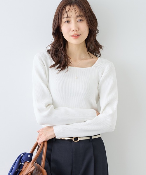 【素材感】・レーヨンにストレッチ糸をプレーティングし、安心感のある肉感に仕上げた素材。・リブ編み仕様で、すっきりとシャープな印象。【デザイン・シルエット】・首元を美しく見せるスクエアネックライン。・デコルテを女性らしく、きれいに引き立てるデザイン。・身体のラインを拾いにくい、ほどよくゆとりのあるサイズ感。・すっきり見えとリラックスした着心地を両立。【カラー】・オフ、ネイビー、クリームの3色展開。・ベーシックで幅広いニーズに対応。【スタイリングポイント】・一枚着で品よく決まる、きちんと感のあるトップス。・ジャケットのインナーとして、ネックラインをシャープに見せるスタイリングがおすすめ。・きれいめボトムと合わせたオンスタイルにも好相性。----------------------------- 裏地:なし 光沢感:なし 透け感:なし 伸縮性:あり 生地の厚さ:普通 季節:春、秋、冬 -----------------------------※撮影時の光、お使いのモニター環境によって色の見え方が違う場合がございます。※2025年秋冬商品より、ワンサイズ展開の商品は「F(フリーサイズ)」表記に変更しております。詳しい採寸はサイズ欄をご覧ください。【モデル着用サイズ】オフホワイト(15)/ネイビー(40)着用 身長:165cm 着用サイズ:Fクリーム(83)着用 身長:165cm 着用サイズ:F【2026 Spring】【26SS】