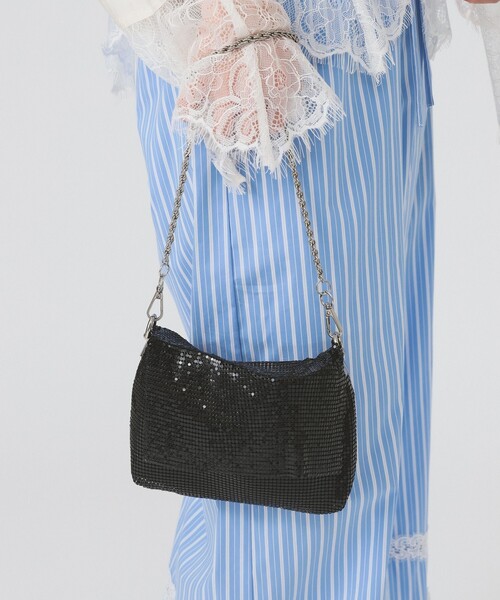 日常にモードな煌めきをプラス■デザインメタリックな質感が際立つミニバッグ。 シルバーに黒のドットが映える遊び心溢れるデザインと、シックに決まるブラックの2色を展開しています。付属の2本のチェーンを付け替えることで、その日の気分や装いに合わせてハンドバッグとしてもショルダーバッグとしても対応可能。■コーディネートデイリーなデニムスタイルのアクセントにしたり、オケージョンシーンの華やかなバッグとして取り入れるのもおすすめ。メタリックな素材の輝きが、コーディネート全体をぐっとクラスアップさせてくれます。■サイズアクセサリー感覚で持てるコンパクトなサイズながらもマチがあり、スマートフォンやリップなどの必需品を持ち運べます。■素材表地には重厚感のあるアルミニウム素材を使用。※光の当たり具合やパソコンなどの閲覧環境によって、実際の色味と異なって見える場合がございます。予めご了承ください。※商品の色味は商品単体で撮影した画像をご参照ください。■おすすめシーン結婚式、披露宴、セレモニー、2次会(二次会)、1.5次会などのお呼ばれや、成人式、同窓会、謝恩会等のパーティーシーン。また、七五三、お宮参り、食事会、入学式(入園式)、卒業式(卒園式)、演奏会、発表会など、フォーマルなシーンでも活躍するアイテム。