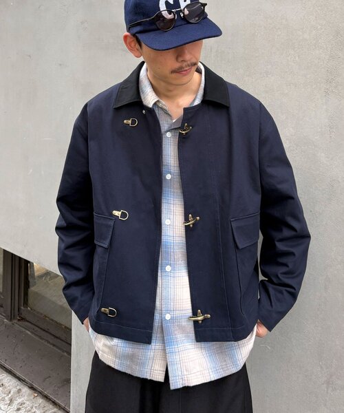 羽織るだけで今っぽいワークジャケット▼ポイント無骨なファイヤーマンジャケットをベースに、今っぽく着やすいバランスに仕上げたワークジャケットです。特徴的なフロントディテールがスタイリングの主役になり、羽織るだけで存在感のある着こなしが完成します。程よくハリのある素材感で、デイリーにも取り入れやすい一着です。▼スタイリングデニムやカーゴパンツと合わせて、ラフに羽織るだけで雰囲気の出るスタイリングに。インナーはシンプルにまとめることで、フロントディテールがより引き立ちます。---------------------------------------------------透け感:なし伸縮性:なし裏地:なし光沢:なし---------------------------------------------------家庭洗濯: 不可タンブル乾燥: 不可アイロン: 中温150℃までクリーニング: 石油系溶剤によるドライクリーニング可, ウェットクリーニング不可●この製品は非常に色落ち・色移りしますので着用の際は次の点に十分ご注意下さい。・白、淡色系のものと組み合わせて着用されると、摩擦によって他のものに色移りする恐れがあります。・雨の日や汗等、濡れた状態はさらに他の衣料品へ色落ち、色移りしやすくなります。・保管の際は、色移りを防ぐ為、白・淡色系の衣料品を重ね合わせないで下さい。---------------------------------------------------※着用、お取り扱いの際は、商品についている品質表示とアテンションタグを必ずご確認下さい。※画像の商品はサンプルです。実際の商品と仕様、加工、サイズが若干異なる場合がございます。※可能な限り実物に近いカラーにて掲載していますが、撮影環境やモニター環境などにより製品と画像のカラーがやや異なって見える場合もございます。予めご了承ください。【お買いものをよりお楽しみいただく為に!!】▼商品のお気に入り登録(ハートマークをクリック)お気に入りアイテムの完売カラーの再入荷通知や、ラスト1点の通知、セールの通知も受け取ることができます。▼ブランドのお気に入り登録新商品や再入荷、クーポン配布などのお得な情報を受け取ることができます。