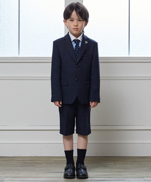 クラシカルなチェックのジャケットとパンツは上品な華やかさを演出。目を引くドット柄のネクタイはワンタッチでつけれる簡単仕様。襟についた飛行機モチーフのピンパッジがさりげなく彩りを加えます。 ボトムはゴム入りの設計で脱ぎ履きも簡単。 入卒式や発表会など、特別な日の装いにぴったりです。 ※掲載画像はご使用の端末やモニター環境により、色の見え方が多少異なる場合がございます。あらかじめご了承ください。 【透け感】透けない 【生地の厚さ】普通 【伸縮性】あり 【裏地】あり 【ポケット】あり 【アジャスター】あり