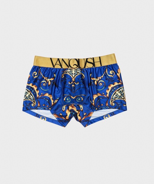鮮やかなブルーにゴールドのバロック柄でラグジュアリーな印象の一枚。 艶やかな配色と繊細なVANQUISHオリジナルの総柄デザインが、インナーでも妥協しないスタイルを叶えます。 伸縮性に優れた素材が身体にフィットし、快適な穿き心地と美しいシルエットを両立。 ジャカード編みのロゴ入りウエストゴムや、箔押し加工の専用BOXパッケージも、所有感を高めるディテールです。 ギフトにもおすすめの一着。 【VANQUISH /ヴァンキッシュ】 2004年に誕生、渋谷を拠点とした若者へ向けジャケットスタイルからカジュアルスタイルまでスタイリッシュに着こなせる幅広いスタイルを提案し、渋谷系の若者より絶大な支持を得たのちに近年は日本国内外へ向けて「和」と「渋谷」をモチーフとしたアイテムを展開し、世界中のどこに居ても日本と渋谷を思い出させてくれるスーベニアラインも提案し続ける渋谷発のブランド。 ▼ 商品のお気に入り登録がおすすめ !! 商品ページ内のハートマークをクリックすると、商品完売時の再入荷、在庫1点時の通知、コーディネート画像がアップされた時などや、お得なお値下げの際の通知を受ける事ができます。 【お知らせ】ページでも通知が確認できます。