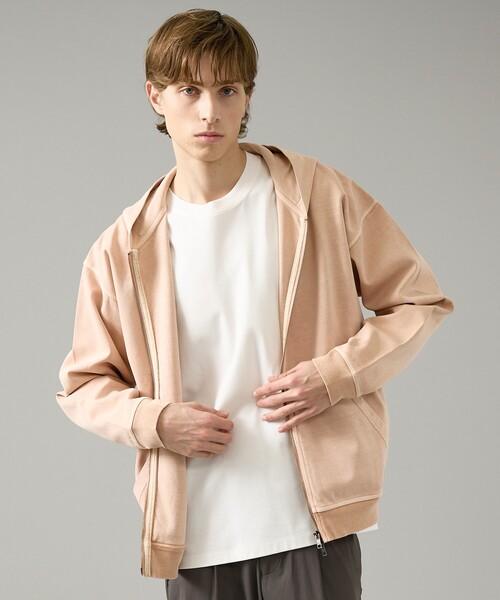 上品なカジュアル。大人のためのZIPパーカーヴィンテージライクな雰囲気と綺麗目が両立。春らしいカラーリングでこなれ感たっぷり。【素材】厚みのあるコットン100%のポンチ素材を使用。しっかりと目が詰まり、綺麗な目面。ピグメント加工を施すことで色が落ちたようなカジュアル感が生まれています。スウェットのような肉感でラフに着用できます。【デザイン】カジュアル感と綺麗目のバランスが絶妙なZIPパーカー。ポンチ特有のハリ感で、フードも綺麗な立ち上がり。フロントはダブルZIPで着こなの幅が広がります。肩が落ちた丸みのありリラックスシルエット。余裕のある身幅ながら、やや短めに設定した着丈ですっきりと着こなせます。裾リブや袖口でメリハリを付けることで、だらしなく見えず上品な雰囲気。ピグメント加工により縫い目などにアタリが生まれ、こなれた印象。爽やかな春らしいカラーリングにも注目です。【コーディネート】綺麗目カジュアルに使いやすいZIPパーカー。ゆとりのあるサイズ感ながらメリハリのあるシルエットで、ワイドパンツ~細身のチノパンまで幅広いパンツのシルエットに対応。Tシャツやシャツの上に羽織ってライトアウター使いも、アウターのインナーとしても活躍します。同素材のプルオーバー品番:00520020000)もございます。