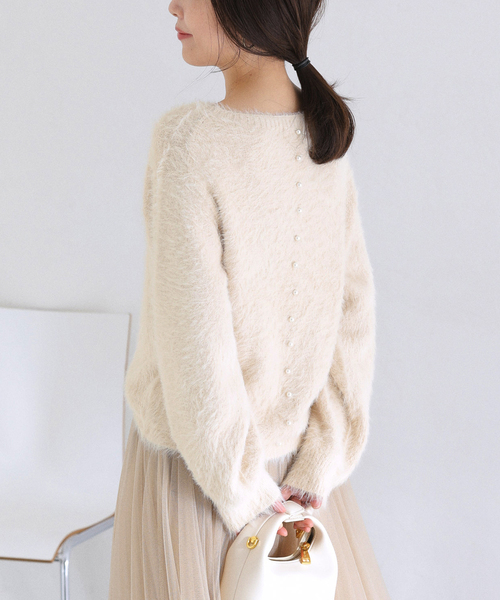 【2026SS】LaTotalite《WEB限定》ご好評のニットがアップデート!今の季節に嬉しい長袖ver.が登場!ふんわりとしたファーの素材感が女性らしさを引き立てる、バックパールデザインの長袖プルオーバー。後ろ姿にさりげなく並ぶパールが、シンプルながらも上品なアクセントを添えます。柔らかく軽やかな着心地で、リラックス感がありデイリーに活躍する一枚。ご自宅で洗えるイージーケア仕様なのも、デイリー使いに嬉しいポイントです。パンツにもスカートにも合わせやすく、オンオフ問わず活躍。一枚で着映えする、大人のための華やかニットプルオーバーです。**********************透け感:なし裏地:なし伸縮性:あり光沢感:なし生地の厚さ:普通**********************【スタッフ着用コメント】《スタッフ名:mizuki》身長:160cm/体型:普通/普段サイズ:S~M/着用サイズ:フリーサイズ感:程よくゆとりあり。着丈は長すぎず、合わせるボトムを選びません。素材感:柔らかな肌触り。伸縮性があります。着心地:素肌に触れてもチクチクしないニット素材でストレスフリーでした。**********************※取り扱いについては、商品についている品質表示でご確認ください。※照明の関係により、実際よりも色味が違って見える場合があります。またパソコン・スマートフォンなどの環境により、若干製品と画像のカラーが異なる場合もございます。※商品の色味は、商品アップ画像をご参照ください。着用モデル身長:160cm 着用サイズ:フリー本体:手洗い可能