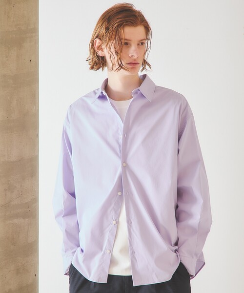 こなれ感◎。一枚で雰囲気増す大人シャツ。きちんと感のあるパリっとした質感。ストレスを感じないストレッチ性。ゆるやかなAラインで、大人の余裕を演出するサイズ感。カジュアルになりがちな日常に、きちんとした印象を加えられるアイテムです。【素材】パリっとしたハリ感のあるコットンベース素材。天然素材のやさしさに、ストレッチ糸が混紡されストレスを感じない着用感。オールシーズン対応する肉感で、幅広いシーンで活躍します。【デザイン】抜け感のあるリラックスしたサイズ感。綺麗目な素材の品と相まって、大人の余裕を演出します。ヨーク位置を少しさげ、インタックにすることで、ゆるやかなAラインシルエットが実現。袖幅をやや広めにとることで、袖をまくった時にも上品な抜け感が生まれるディテールです。【コーディネート】幅広いスタイルに合わせれらるオーバーサイズシャツ。ブルゾンやジャケットのインナー使いはもちろん、1枚でもしっかり主張のあるアイテム。夏にはTシャツなどの上からサラリと羽織ってもOK。オールシーズンで活躍するアイテムです。※撮影画像は、光の当たり具合で色味が多少異なって見える場合があります。商品の色味は素材詳細画像をご参照ください。