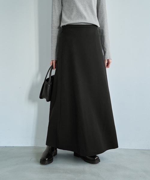 IラインとAラインの中間、という感じのシルエットを持つ、シンプルでスッキリとしたロングスカート。クセの無いデザインでキレイめコーデにもカジュアルな格好にも使える、対応力の広いスカートです。 見た目は普通のスーツやジャケットを作るような生地ですが、手触りにどこか暖かい温もり感があるのが特徴。真冬も着れる暖かさを持ちつつ、季節感を限定しない感じで春先も使用できます。 ◆サイズ感:ゆったりめの着用感で、ウエストも緩めの作りです。緩さはありますがSサイズの方でも普通にご着用いただけます。腰で穿くのも素敵なスカートです。 ◆丈感:スカートの中でも長めなタイプ。普通身長の方には02サイズはかなり長く、とくにスニーカーやフラットシューズ合わせの場合164cm以上の方にお薦めです。 ◆シワ:とくにできやすい生地ではありません。 【その他の仕様】 ◆着用時期:10-5月頃が目安 ◆サイズ感:ゆとりのあるサイズ感 ◆丈感:くるぶし程度の長さが基準 ◆シルエット:控えめなAライン ◆ウエスト:背面ゴム仕様 ◆ベルトループ:なし ◆厚み:普通 ◆柔らかさ:柔らかさの中にハリ感が共存 ◆肌触り:暖かみがありつつ、サラッとしている ◆着用ジワ:できにくい ◆毛羽立ち:できにくい ◆伸縮性:ややあり ◆光沢感:なし ◆透け感:なし ◆スリット:左サイドにあり(26-27cm程度) ◆着脱:左サイドにファスナー&上部ホックあり ◆ポケット:なし ◆裏地:あり ◆手洗い:可能 ◆裾上げ:お直しに出していただけます ◆アイロン:不要 ◆スチーマー:使用OK 【お色について】 ◆ブラック:定番的な通常のブラックです。 ◆グレー:適度な明るさがありつつ落ち着きもあるミドルグレー。チャコールとライトグレー、その中間的なグレーの3色の糸を使用しています。とくに青味があるなどのクセはない普通のグレー系統のお色です。