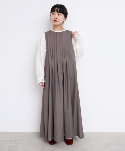 とろんと落ち感のあるTR生地で作ったジャケットとノースリワンピースのシリーズ。セレモニーなどハレの日の装い服として、セットアップでもおすすめです。ぜいたくなタックのデザインでシルエットを出したワンピース。アクセントになるボタン使いでバックスタイルも素敵な1着です。きれいめなインナーも、普段使いにカットソーやニット合わせも◎な立ち位置を決めすぎずにコーディネートを選べるアイテム。定番ブラックに、ブラウンがかったグレーの2カラー。※着用商品はサンプルです。実際の商品と仕様、加工、サイズが若干異なる場合がございます。※光の関係で実物の商品の色味とは若干異なる場合がございます。実際に近い色味は詳細画像をご参照下さい。※取り扱いの注意については取り扱い表示をよくご確認の上、着用をお願いいたします。【素材の特性、お取り扱いの注意】・この製品は、素材の特性上、汗や雨等でぬれた時、強くこすられた場合等、色落ちし、他の衣料に移染することが有ります。雨や水にぬれた場合は、こすらずに、タオル等でたたく様に水気を取って下さい。お洗濯の際は、ドライクリーニング専門店へお願い致します。・この製品は摩擦により毛羽立ちやすく白化しやすいのでご注意ください。また、濡れると風合いが固くなる場合があります。洗濯を繰り返すことにより、その風合いが消失するおそれがありますのであらかじめご了承下さい。・ひっかかり、ひきつれが起こり易いので、着用、着脱時には、十分注意して下さい。l'atelier du savon(アトリエドゥサボン) CONCEPT 1つ1つにかけられた手のぬくもり日々の生活に、少しのデザインを加えた大人の日常着あそび心とあたたかみ
