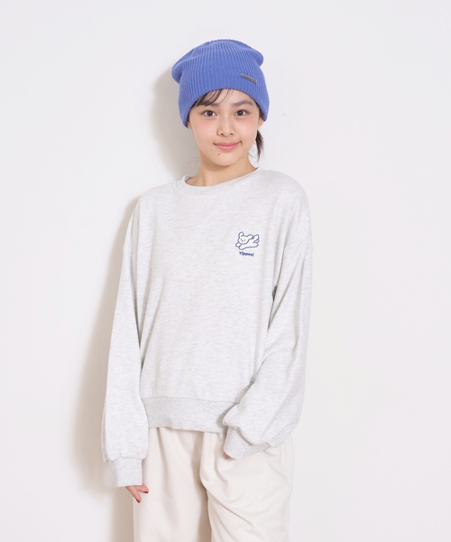 飛んでいるようなアニマルのグラフィックが可愛いトレーナーです。 胸元には刺しゅうをワンポイントでほどこしました。 どんなボトムにも合わせやすいベーシックなデザインなので、デイリー使いにおすすめ。 ゆとりのあるシルエットでカジュアルに着用できます。 【透け感】透けない 【生地の厚さ】普通 【伸縮性】あり 【裏地】なし 【ポケット】なし 【アジャスター】なし