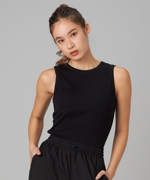 かわいいだけじゃない、コットン混で快適な着心地のタンクトップ 【デザインポイント】 ヨガタイムもホリデー気分に!キラッと輝く華やかタンクトップ。 さりげないラメが光を受けて輝き、ホリデーらしい華やかさをプラス、シンプルながらも存在感のあるデザイン。 リブ編みの程よいフィット感で、動きにしっかりフィットしヨガやストレッチのポーズもスムーズにサポート。 コットン混で汗をかいてもベタつかずドライな着心地。 冬らしいシーズナルカラーが、ヨガウェアにも季節感をプラス。気分を上げて、自分だけのホリデースタイルを楽しんで! 心も体も輝くホリデータンクトップで、特別なシーズンをもっと楽しく! 【素材】 ラメ糸を使用したカラフルで遊び心溢れる、伸縮性豊富なリブ素材。 《生地》リブ 《伸縮性》ナチュラルストレッチ ●サイズ:M ●着丈:約52.5cm ●身幅:約36cm ●モデル身長:173cm ●着用サイズ:Mサイス ●カラー:009ブラック、011ベージュ