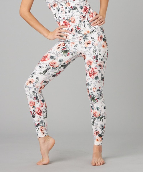 ホリデーコラボプリントのレギンス 【デザインポイント】 ヘルシーなライフスタイルを発信する動画クリエーター石井あみさんとのスペシャルコレクション。 石井あみさんの感性が光る、フェミニンかつ機能的なデザイン。 華やかなクリスマスブーケのプリントでホリデーシーズンに華やぎをプラス。 動きやすさを追求したデザインでフィット感とサポート力を両立。 腰回りの安定した着用感。 洗練されたデザインと機能性を両立した、大人のためのウェア。 【素材】 廃棄される生地を利用した再生ポリエステルを使用したエコ素材。 柔らかな風合いながら適度な厚みとパワーで安心して着られる。 吸水速乾・消臭に優れた機能素材。 【プリント素材の取扱いについて】 洗濯の際は取扱い表示に従い、裏返してプリント面を内側にして陰干していただくと光による変色が起きにくい。 《生地》スムースタッチ 《伸縮性》ハイストレッチ ●サイズ:S、M、L ●股上:S-約9.5+15.5cm、M-約9.5+15.5cm、L-約9.5+16cm ●股下:S-約62cm、M-約65.5cm、L-約69cm ●裾幅:S-約9cm、M-約9.5cm、L-約10cm ●モデル身長:173cm ●着用サイズ:Mサイス ●カラー:400ホワイトプリント、409ブラックプリント