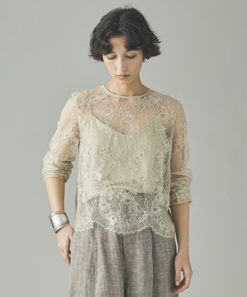 2026 SPRING&SUMMER COLLECTION繊細で上質なレースブラウス■デザイン・日本のリバーレースメーカーのレースで作ったクルーネックブラウス。・裾と袖口にはレースのスカラップ(波状の縁飾り)をあしらい、エレガントな仕上がりに。・ベーシックなパンツなどと合わせ、透け感を活かしてインナーを見せる着こなしも素敵。■素材 / お手入れ方法・複雑で優雅な模様を生み出すリバーレース機で織られた繊細で上質なレース生地。・リネン混の素材を使用しており、特にベージュの色味は唯一無二の絶妙なニュアンスカラー。【Curensology(カレンソロジー)】旅とは、非日常と日常の間を行ったり来たりしながら、その土地の空気や風景、文化、歴史、そして出会いを、五感のすべてを使って受け止めること。「カレンソロジー(Curensology)」は、そんな旅をイメージした、知的でエレガントな女性のためのワードローブとテキスタイルを提案。バカンスや出張に持っていきたい機能的なアイテムをはじめ、日々の暮らしをアップデートする新しいデザイン、着心地の良いエッセンシャルなものなどを展開しています。※サンプルにて撮影をしておりますので、実際の商品とは仕様や加工・サイズ等が若干異なる場合がございます。※屋外の光や照明の当たり具合で、実物と色味が異なって見える場合がございます。詳細画像の色味をご確認ください。 なお、商品の色や質感を出来るだけ忠実に再現するよう心掛けておりますが、パソコンなどの環境により、実物と若干異なる場合がございます。▼商品のお気に入り登録をおすすめします▼♡をクリック!完売カラーの再入荷や、ラスト1点の通知、セールの際の通知を受ける事ができます。ブランドのお気に入り登録もご一緒にお願い致します。
