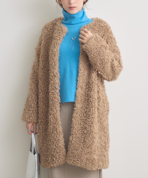 【KATHARINE ROSSオリジナル】ふんわりもこもこ、軽やかに暖かい冬のボアコート[素材]・ボア素材は、もこもことした柔らかい毛足が特徴で、見た目にも触り心地にも暖かさを感じさせます。・程よい厚みがありながら軽く、裏地付きで滑らかな着心地を実現。[デザイン]・首元をすっきり見せるノーカラーデザインが特徴。・ミドル丈と相まって、カジュアルになりすぎず、大人の女性らしい上品な印象に仕上がります。・フロントはスナップボタン仕様で着脱も簡単。・両サイドのポケットは小物の収納にも便利で、デイリー使いに最適です。[スタイリング]・ハイネックニットやタートルとレイヤードして、暖かくシンプルにまとめた冬の定番コーデに。・タイトスカートとブーツで、ノーカラーの上品さを引き立てたフェミニンスタイルに。■光沢感:なし■透け感:なし■伸縮性:なし■生地の厚さ:厚手※照明や光の当たり具合で色味が違って見える場合があります。※システムの都合上、店舗より入荷が遅れる場合がございます。【お買い物をよりお楽しみいただくために】・商品のお気に入り登録をおすすめします!♡マーククリックで登録できます。完売カラーの再入荷や、ラスト1点になったときの通知、セールの際に通知などお得な情報を受けることができます。・ブランドのお気に入り登録もご一緒にお願いいたします!新商品や再入荷、などいち早くブランドの最新情報をお届けします。