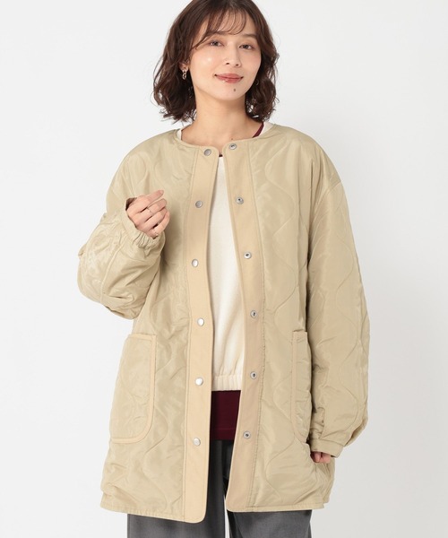 立体的なフォルムでこなれた印象に春先まで長く活躍するリバーシブルコートーーー【素材】軽くて着心地の良い素材を使用。中綿入りなので暖かく、これからの時期にぴったりです。【デザイン】軽くて暖かいリバーシブル仕様のノーカラーコート。気分やお好みに合わせて、無地とキルティングの2面をお楽しみいただけます。ベーシックなデザインながら、立体的なフォルムは羽織るだけでこなれた印象に。ゆったりとしたサイズ感とお尻の隠れる長め丈なので、中にしっかり着込めて防寒対策に優れているところも嬉しいポイントです。アウター コート 2WAY ノーカラー リバーシブルーーー【スタイリング】パンツ合わせで大人カジュアルに、スカートやワンピース合わせで女性らしく◎トーンアップしたカラー展開なので、春先までご着用いただけます。