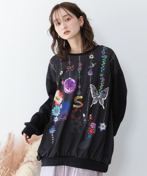 スカラーちゃんやロゴを主役に、スカラーらしい花や蝶々など華やかなモチーフが揺れる季節感たっぷりなガーランド柄チュニック。やや後ろ下がりの長めな丈感でさりげなく体型カバーも叶えつつ、丸みのあるやわらかなシルエットがコーデにフェミニンな印象を与えてくれます。ネコ部分はアップリケ刺繍で仕上げ、立体感のある愛らしいアクセントをプラスしました。カラーは、優しげな雰囲気の05(アイボリー)・色とりどりのオーナメントが映える09(ブラック)の2色展開!すっきりめのスカートやパンツと合わせてトップスのシルエットを引き立てるコーデや、ロングスカートやワイドパンツでボリューム感を意識したコーデもオススメです?※販売商品以外はモデル私物となります。品番:153764カラー:05(アイボリー)09(ブラック)サイズ:M寸法:総丈約75cm/身幅約60cm/肩幅約56.5cm/袖丈約52cm/重さ約420g素材:無地部分:綿80%・ポリエステル20% 前身頃:ポリエステル100%MADE IN CHINAーーーーー裏地:なし透け感:やや透け感あり生地の厚さ:普通生地感:やわらかめ伸縮性:ありポケット:なしーーーーー※ 刺繍使用※ アップリケ使用取り扱いのご注意※この製品は摩擦や水濡れにより色落ちにすることがありますのでご注意ください。※この製品は生地独特な風合いを出すために、製品加工してあります。(製品は1点、1点多少表情が違います)※この商品はデリケートな素材を使用しております。糸及び編組織の性質上、引っ掛け・引っ掛かりやすい為、着脱時や取り扱いにご注意下さい。ATTENTION※実測値のため、多少の誤差はご容赦ください。※商品カラーはできる限り再現するように心がけていますが、モニターやブラウザ等によって 実際の商品と差異が生じる場合がございます。あらかじめご了承くださいませ。【ScoLar】コーディネートの主役になれる服をコンセプトに、デザインはレトロな雰囲気を彷彿させる、独創的でインパクトのあるプリントが中心。幅広い年代にご利用頂けるゆったりとしたシルエット、ワクワク・ドキドキ感のあるカジュアルファッションを提案します。ーーーーーーーーーーーーーーーーーーーー★お気に入り登録について完売カラーの再入荷通知やお得な情報を受け取ることができます。★ブランドのお気に入り登録について新商品や再入荷などのお得な情報を受け取ることができます。