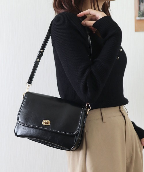 【レトロ可愛いターンロックフラップ】 大人気、レザーライクフラップショルダーバッグ/ハンドバッグ。 程よく艶のあるPUレザーを使用し、フロントのターンロック金具がおしゃれなトレンドデザイン♪ ショルダーストラップはギボシ穴で長さ調節ができるので、肩掛け~斜め掛けと2WAYで使い分け可能◎ 1way-肩掛けハンドバッグ 2way-斜めがけクロスボディバッグ 三つ折り財布やスマホ、ミニポーチ、ハンカチ、イヤホンなどが入るコンパクトな容量。 外ポケットが付いているので、出し入れの多いスマホ収納にぴったり! オンオフ兼用でキレイめにもカジュアルにも合わせやすい、上品なショルダーバッグです。 [仕様] ・メイン口:フラップ&ターンロック開閉 ・内側:オープンポケット×1、ファスナーポケット×1 ・体側:マグネットボタン付ポケット×1 ・肩紐:着脱式&長さ調節可能 ・自立式 [サイズ/重さ] 高さ16cm/下横幅23cm/奥行(底マチ)8cm/肩紐長さ最長105cm 290g [素材] 合成皮革 おすすめのシーン 通勤 オフィス 通学 デート ディナー オケージョン フォーマル サブバッグ、旅行、レジャーなど幅広くお使いいただけます。 クリスマスやお誕生日などのプレゼントやギフトなどにも最適な仕上がりです。 ▼ブランド 【florge】 -フロージュ- 「着る人の心や体を癒し包む服、何気ない日常をちょっとだけ特別な日に変えられるアクセサリー」をテーマに、おしゃれでかわいい商品からおとなめオフィスに使える商品までトレンドの人気アイテムをご提案するレディースブランドです。 プチプラ商品を多く取り扱っているのも嬉しいポイント♪ 画像付近のブランド名からぜひご覧ください。 【インフォメーション】 ▼商品のお気に入り登録 (カートの右のハートをクリック) 完売カラーの再入荷通知を受け取ることができます。 ▼ブランドのお気に入り登録(上部のブランド名をクリック) 新商品や再入荷の通知を受け取ることができます。