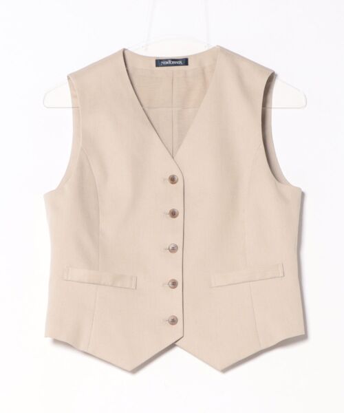 リネンの風合いが優しげな旬顔セットアップクラシカルな雰囲気に麻のナチュラルな風合いをプラスした、セットアップ対応ベスト。同素材のボトム(品番:51255225)(品番:51315225)と合わせるのはもちろん、単品でもサッと羽織るだけで着こなしをアップデートしてくれる1着です。襟付きシャツやTシャツ、ワンピースなど、様々なアイテムとのレイヤードをお楽しみください。カラーは明るく優しい表情のベージュ、シックに決まるネイビーの2色展開。■素材高密度の織物生産を得意とする静岡県浜松市で織られた、ポリエステルリネンのコードレーン生地。リサイクルポリエステルを60%使用したサステナブルな素材です。麻独特の色ムラが合成繊維だけでは表現できないナチュラルさを感じさせ、堅くなりすぎずオンオフ兼用できる素材感に仕上がりました。着心地の良いストレッチ性も嬉しいポイント。また、手洗い可能なので、ご自宅でお手入れしていただけます。※麻のフシや色ムラは天然素材の特性によるものです。ご了承ください。■デザインマニッシュかつクラシカルな表情を持つ、前開きのVネックベスト。短めの着丈が軽やかで、アクセサリー感覚で羽織れるアイテムです。フロント開きと同じ釦を用いたバックベルトもさりげないポイント。裏地あり。ポケットは飾りとなります。■シーズン2025年春夏商品