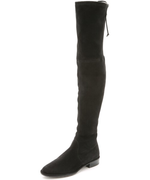 A stretch-suede shaft lends a close, comfortable fit to slim Stuart Weitzman over-the-knee boots. A leather drawstring cinches the top line. Stacked heel and rubber sole. Leather: Goatskin. Made in Spain. Measurements Heel: 1in / 25mm Shaft: 25.25in / 64cm Circumference: 13in / 33cm