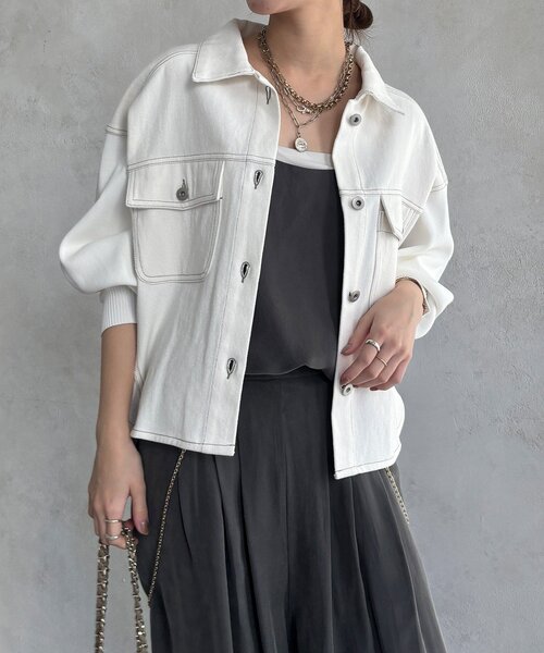 ■2026 SPRING & SUMMER ITEM■WEB限定!異素材がミックスされたブルゾン異素材ミックスがおしゃれなブルゾン。見頃はデニムジャケットのディティール継承しつつ袖をニットにすることで優しい印象を与えます。肩のラインを落としたドロップショルダーとボリュームのある袖が女性らしさを演出します。デニムジャケットは「動きづらい」とお悩みの方でもニットの伸縮性が快適な着心地を実現!絶妙な丈感が脚長効果も期待できますよ◎バックにタックが入ることでキレイなフリルが生まれ、後ろ姿もきれいな印象を与えるアイテムです。- POINT -・WEBでしか買えないアイテム・異素材ミックスで優しい印象に・ニットの伸縮性で動きやすい--------------------------------洗濯:手洗い可能透け感:なし裏地:なし伸縮性:あり(袖)光沢感:なし--------------------------------【 ♡ をクリックでお得な情報をお知らせいたします 】〈 商品のお気に入り登録 〉お気に入りアイテムのお値下げ・再入荷・在庫ラスト1点など通知を受けることができます。〈 ブランドのお気に入り登録 〉DOUDOUの新商品や再入荷、セール、クーポン配布などお得な情報を受けることができます。--------------------------------------※ 生産の都合上、お届け時期が前後する場合がございます。※ 掲載画像の商品の色味は、 撮影場所や光の当たり具合などにより色味が異なって見える場合がございます。 また、お客様のお使いのPC・スマートフォン等のモニター環境などにより色味が異なって見える場合がございます。予めご了承の上ご注文ください。 ※ 着用、お取り扱いの際は、商品についている品質表示とアテンションタグを必ずご確認下さい。