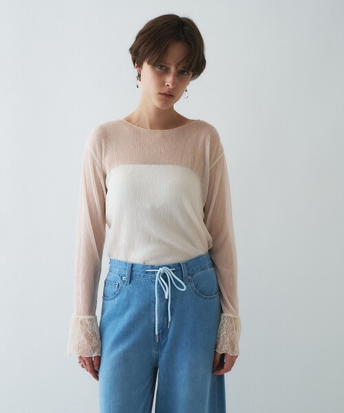 【デザイン】 ・レイヤードに最適な春に映えるシアートップス。 ・トレンドのシアー素材と袖口の繊細なレース切り替えが、大人の抜け感を演出する長袖カットソー。 ・顔周りをすっきりと整えデコルテを美しく見せるボートネックデザインで、身体のラインを拾いすぎないゆるっとした絶妙なサイジングで仕立てました。 ・袖丈はあえて長めにし、トップスやジャケットの袖口からレースを覗かせれば、今年らしいレイヤードスタイルが完成します。 ・1枚で着るのはもちろん、重ね着のインナーとしても重宝する着回し力の高いアイテムです。 【素材】 ・程よい透け感が上品な、軽やかで表情のあるシアー素材を使用。 ・シワになりにくく、ご自宅でのお洗濯も簡単なイージーケア仕様で、デイリーに気兼ねなく取り入れられます。 ・肌あたりも良く、長時間の着用でもリラクシーな着心地です。 【着こなしポイント】 ・カーディガンやジャケットのインナーに合わせ、袖口からレースを袖口のレースを覗かせるだけで旬なスタイリングが完成。 ・キャミワンピースやサロペット、ジャンスカのインナーとしても好相性で、きれいめシーンまで幅広く活躍できるアイテムです。 モデル身長:165cm ーーーーーーーーーーーーーーーーーー 気になるアイテムはお気に入り登録がおすすめ! お気に入り登録で、再入荷通知やお値下げ情報をお知らせ。 お得な情報をいち早くお届けいたします! アイテムページにある、ハートマークをクリックして追加できます。 ーーーーーーーーーーーーーーーーーー ※照明の関係により、実際よりも色味が違って見える場合があります。また、パソコン・スマートフォンなどの環境により、若干製品と画像のカラーが異なる場合もございます。 店舗へのお問い合わせ商品番号:R91-85001 ●製品寸法: 02(M):着丈60cm B80cm 袖丈60cm 肩幅33cm 備考: