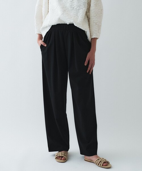 マシンウォッシュでお手入れ簡単。 セレモニーシーンや通勤、デイリーまで幅広く活躍できるセットアップシリーズ。 【デザイン】 ・広がりすぎない絶妙なストレートシルエットが、縦のラインを強調しスタイルアップを叶えるワイドパンツ。 ・お腹周りを締め付けないウエストゴム仕様で、リラックス感のある楽な穿き心地ながら、フロントのタックデザインがきれいめな印象に。 ・程よい厚みでインナーラインを拾いにくいのもポイント。 ・どんなトップスとも合わせやすく、流行に左右されず長く愛用できる、大人のベーシックアイテムです。 【素材】 ・丈夫でしわになりにくく、しなやかな肌触りのツイル素材。 ・ふっくらとした程よい厚みとハリ感が特徴で、伸縮性があり楽な着心地。 ・マシンウォッシュでお手入れも簡単。 【着こなしポイント】 ・同素材のボトムと合わせたセットアップスタイルで、セレモニーや通勤シーンにも活躍します。 ・カラーニットやブラウスとも好相性でデイリーまで幅広くマッチします。 モデル身長:165cm ーーーーーーーーーーーーーーーーーー 気になるアイテムはお気に入り登録がおすすめ! お気に入り登録で、再入荷通知やお値下げ情報をお知らせ。 お得な情報をいち早くお届けいたします! アイテムページにある、ハートマークをクリックして追加できます。 ーーーーーーーーーーーーーーーーーー ※照明の関係により、実際よりも色味が違って見える場合があります。また、パソコン・スマートフォンなどの環境により、若干製品と画像のカラーが異なる場合もございます。 店舗へのお問い合わせ商品番号:R91-65010 ●製品寸法: 01(S):W65cm H105cm 股下67cm 前股上29cm 渡り幅34cm 裾幅23cm 02(M):W68cm H108cm 股下68cm 前股上29cm 渡り幅35cm 裾幅24cm 03(L):W71cm H110cm 股下70cm 前股上30cm 渡り幅36cm 裾幅25cm 備考: