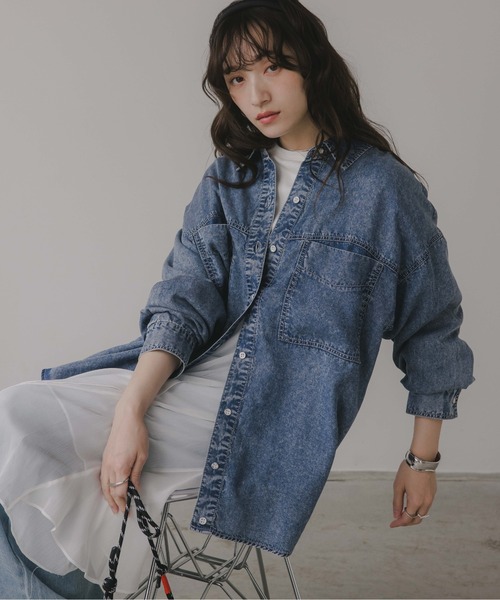 【テンセル素材の落ち感と柔らかさにこだわったオーバーサイズのデニムシャツ】デニムのカジュアルさと、シャツのきちんと感を両立したテンセルデニムシャツ。一般的なデニムシャツとは違い、テンセル(再生繊維セルロース)100%ならではの、とろみ、落ち感、上品な光沢が特徴です。程よいビックシルエットとレギュラーカラーでベーシックなデザインながら、ラフになりすぎず大人が選びたい一枚です。身体のラインを拾いすぎないサイズ感で、さりげなくスタイルアップを叶えます。一枚で着てきれいめカジュアルに。インナーにタートルやシアートップスを入れてレイヤードしても◎オン、オフ問わず使える為、デイリーからお仕事シーンまで幅広く活躍します。一枚で決まり、重ねても映える。大人のワードローブに加えたい、上質デニムシャツです。[素材]再生繊維(セルロース)100%を使った柔らかな落ち感のあるテンセルデニム素材です。非常に柔らかく、肌当たりの良い素材感で長時間の着用でもストレスフリーです。程良い光沢と落ち感があり、カジュアルすぎない印象を演出します。環境にも配慮したサスティナブル素材を使用しています。--------------------透け感:なし伸縮性:なし裏地:なし生地の厚さ : 薄めポケット:あり(胸元2つ)洗濯方法:家庭洗濯可能※お取り扱い注意に記載事項にご注意ください。--------------------【インフォメーション】▼商品のお気に入り登録完売カラーの再入荷通知を受け取ることができます。ぜひご登録ください★▼ブランドのお気に入り登録新商品や再入荷などのお得情報を受け取ることができます。ぜひご登録ください♪