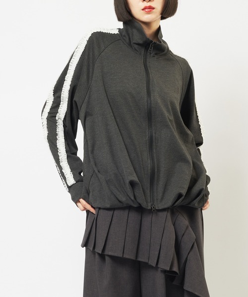 2026 SPRING&SUMMER COLLECTION ■design ・トラックジャケット風フリルブルゾン。 ・袖に配したラインがスポーティーなアクセント。 ・縦のラインでスタイルアップに。 ・前裾はタックデザインでgommeらしいシルエット。 ・ダブルジップのため、様々な着こなしができます。 ・さらりとした生地で肌触り◎ ■fabric ・接触冷感のある夏にピッタリのポンチ素材。 ・ストレッチ性に優れているためシワや毛玉ができにくく、型崩れの少ないテキスタイル。 ■coordinate ・ボリュームのあるボトムを合わせたモードスタイル。 ・細身のパンツを合わせてスポーティーモードにも。 ‥‥‥‥‥‥‥‥‥‥‥‥‥‥‥‥ 厚さ:厚手 透け感:なし 伸縮性:あり 光沢感:なし ポケット:あり 裏地:なし ※詳しいお手入れ方法は商品タグをご参照ください。 ‥‥‥‥‥‥‥‥‥‥‥‥‥‥‥‥ 《お知らせ》 ・商品画像はご覧のモニター環境により、実物の色味と多少異なる場合がございます。予めご了承ください。 ・「商品のお気に入り登録」で再入荷・値下げ・在庫1点などの通知を受け取ることができます。 ・「ブランドのお気に入り登録」で新商品や再入荷など、お得な情報を受け取ることができます。 ※他のキャンペーンにより、期間中に価格が変動する場合があります。 ※セールは予告なく終了させて頂く場合もあります。