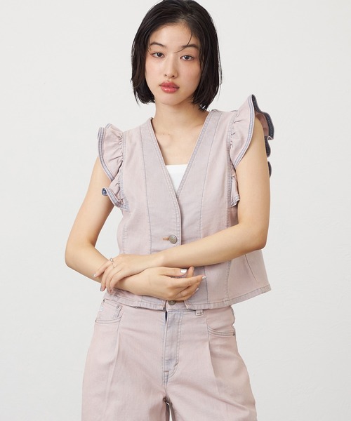 フリルスリーブと2WAYデザインが魅せる、万能ビスチェ Fabric タテ糸に植物由来のテンセル繊維を使用した、SOMETHINGオリジナルのデニム。 その柔らかな風合いは肌に心地よく、環境への配慮も感じられる上質な素材です。 程よいストレッチ性も備え、快適な着心地を叶えます。 Design / Silhouette 前後2WAYで着用が叶う、フリルスリーブビスチェ。 袖のフリルデザインが、着こなしに華やかなアクセントを添えます。 肩幅を小さめに設定することで、華奢見え効果を演出しながらも、フリルが気になる二の腕をさりげなくカバー。 見た目の愛らしさだけでなく、体型を美しく見せることにも配慮したデザインです。 その日のボトムスや気分に合わせて、異なる表情を楽しめる着回し力の高いアイテムです。 ----------------------------------------------- ZOZOTOWNでのお買い物のポイント教えます! 【商品のお気に入り登録】 ♡クリックして保存が便利です ♡→♥ ①完売カラーの再入荷通知やラスト1点の通知 ②期間限定セールやプライスダウンの通知 ③悩んでいるときにも♡登録で一覧検索可能 【ブランドのお気に入り登録】 お気に入りショップ♡クリック登録 新商品や再入荷など、 ブランドの情報をいち早くお知らせします! ぜひご登録ください -----------------------------------------------