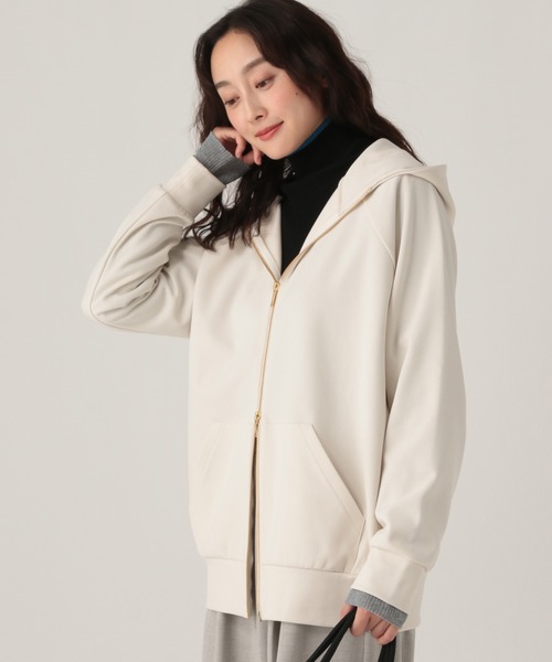【冬の決定版】着ぶくれゼロ。暖かくて「キレイ見え」裏起毛パーカー【悩みに“効く”ポイント】カジュアルなパーカーを、表情のあるジョーゼット素材でキレイ見えする大人の一着に仕上げました。ゴールドファスナーが輝きをプラスし、ジュエリーいらずの華やかさです。厚すぎない素材感にこだわりコートの中に着ても着ぶくれせず、スッキリと着用いただけます。裏起毛でしっかりと暖かいのもうれしいポイント♪【MATERIAL & FUNCTION】(質感):表面感のあるジョーゼット素材を使用しており、カジュアルすぎず上品な印象です。(機能):保温性があり、寒い季節も快適に過ごせます。(素材):ポリエステル96%、ポリウレタン4%【スタイリング】(きれいめに):スカートやワイドパンツと合わせれば、大人のキレイめカジュアルが完成。(レイヤード):シャツやタートルネックをインしたレイヤードスタイルも、着ぶくれしないのでスムーズに決まります。【商品の取り扱いについて】(洗濯):ご自宅の洗濯機でお手入れが可能です。(ケア):素材の特性上、摩擦によるテカリにご注意ください。------------------------【お気に入り登録のおすすめ】■商品のお気に入り(♡)登録┗完売カラーの再入荷通知や、完売間近の通知、ZOZO店のみのセールなどの通知を受けることができます。■ショップのお気に入り(♡)登録┗新商品や再入荷など、いち早くブランドのお得な情報を受け取ることができます。------------------------